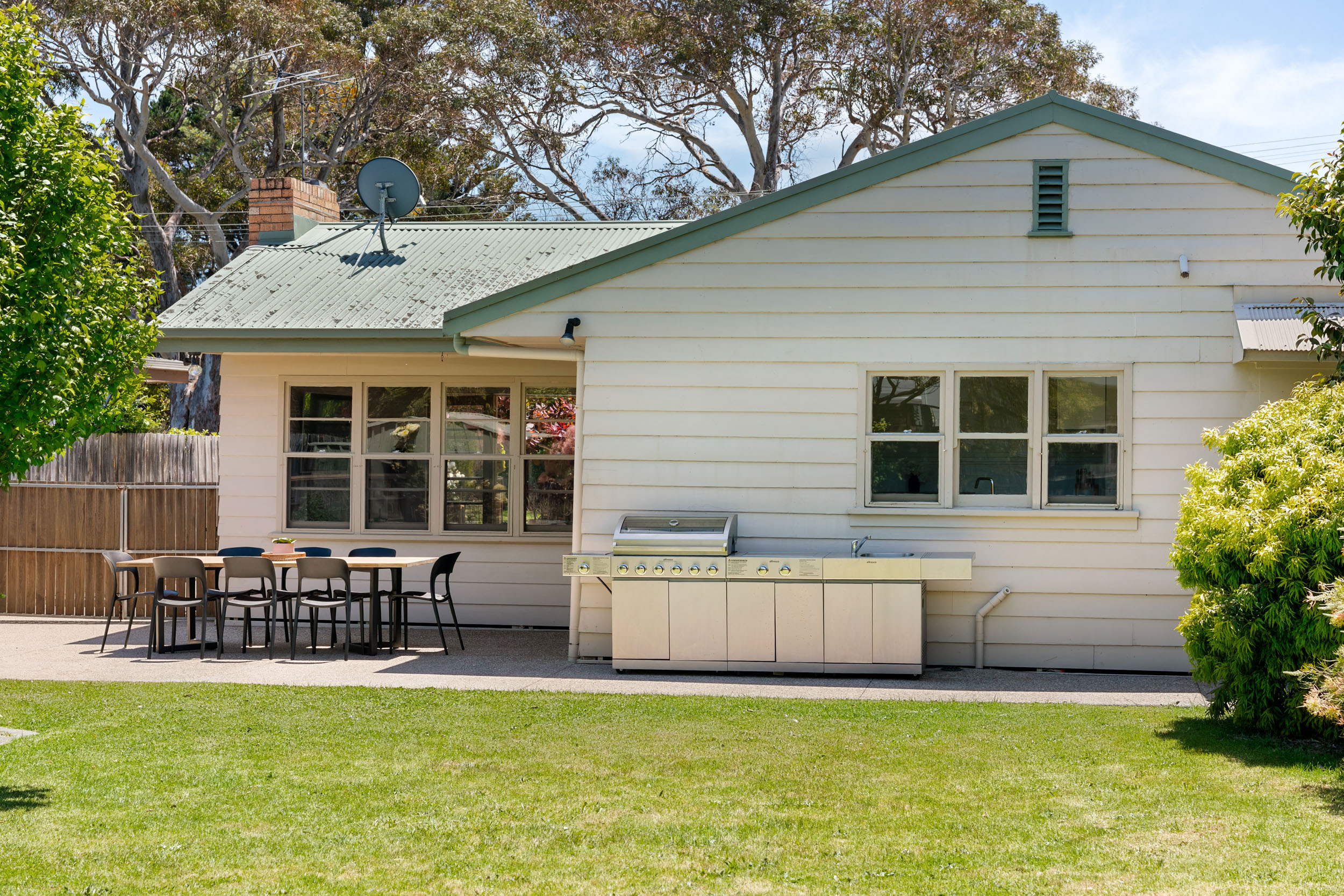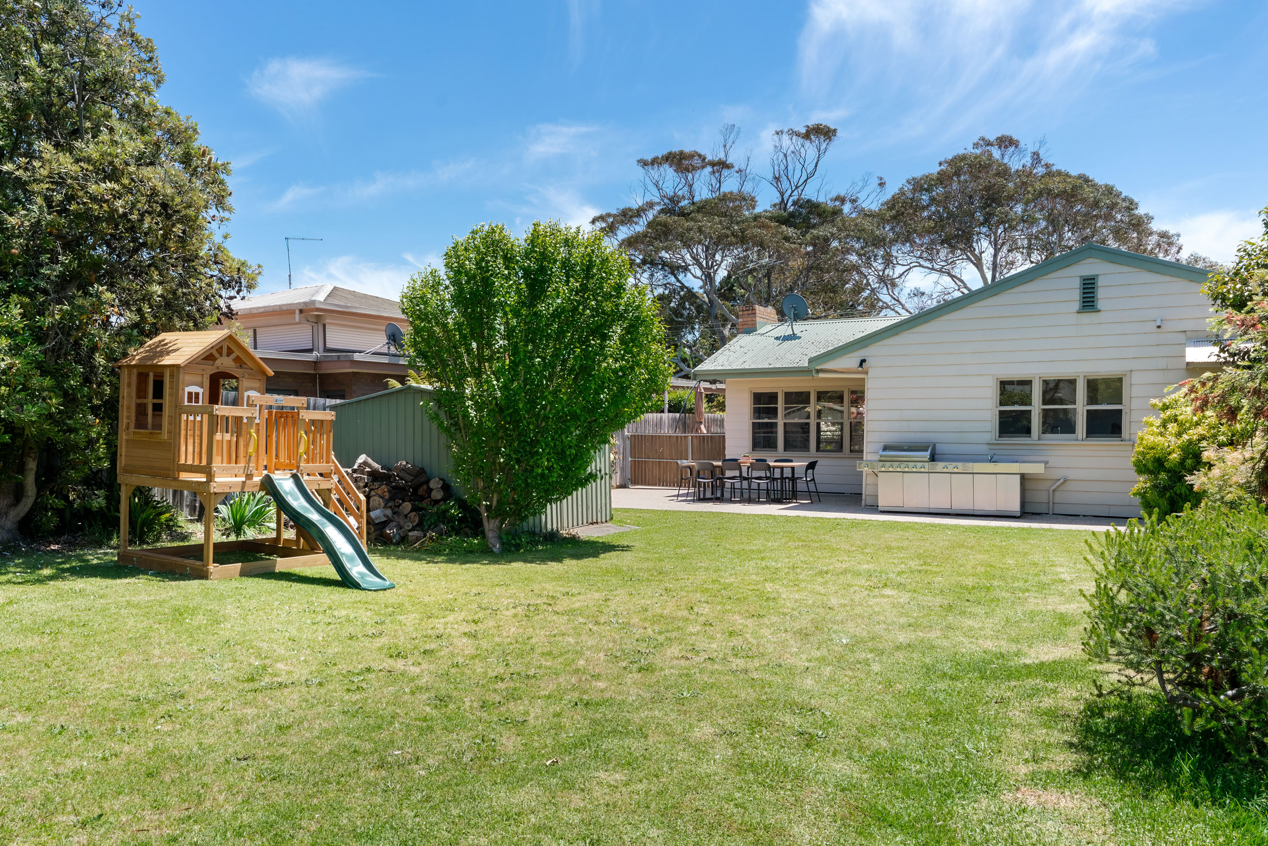 Just a short stroll from the beach and Rosebud Plaza, Gem on the Avenue lets you park the car and enjoy everything on foot. Designed for multi‑generational stays and group getaways, the home offers welcoming living spaces and comfortable bedrooms that give everyone room to relax. The backyard is a kids’ paradise with a cubby house, loads of space to run around, and plenty of room for backyard cricket — all easily supervised from the kitchen window. Fully fenced and pet‑friendly, it’s perfect for bringing your furry family member along. We supply dog bowls, waste bags, and a pooper scooper; you just bring your own doggy bedding. With its unbeatable location and thoughtful touches for families, groups, and pets, Gem on the Avenue is the ideal base for your Rosebud escape.